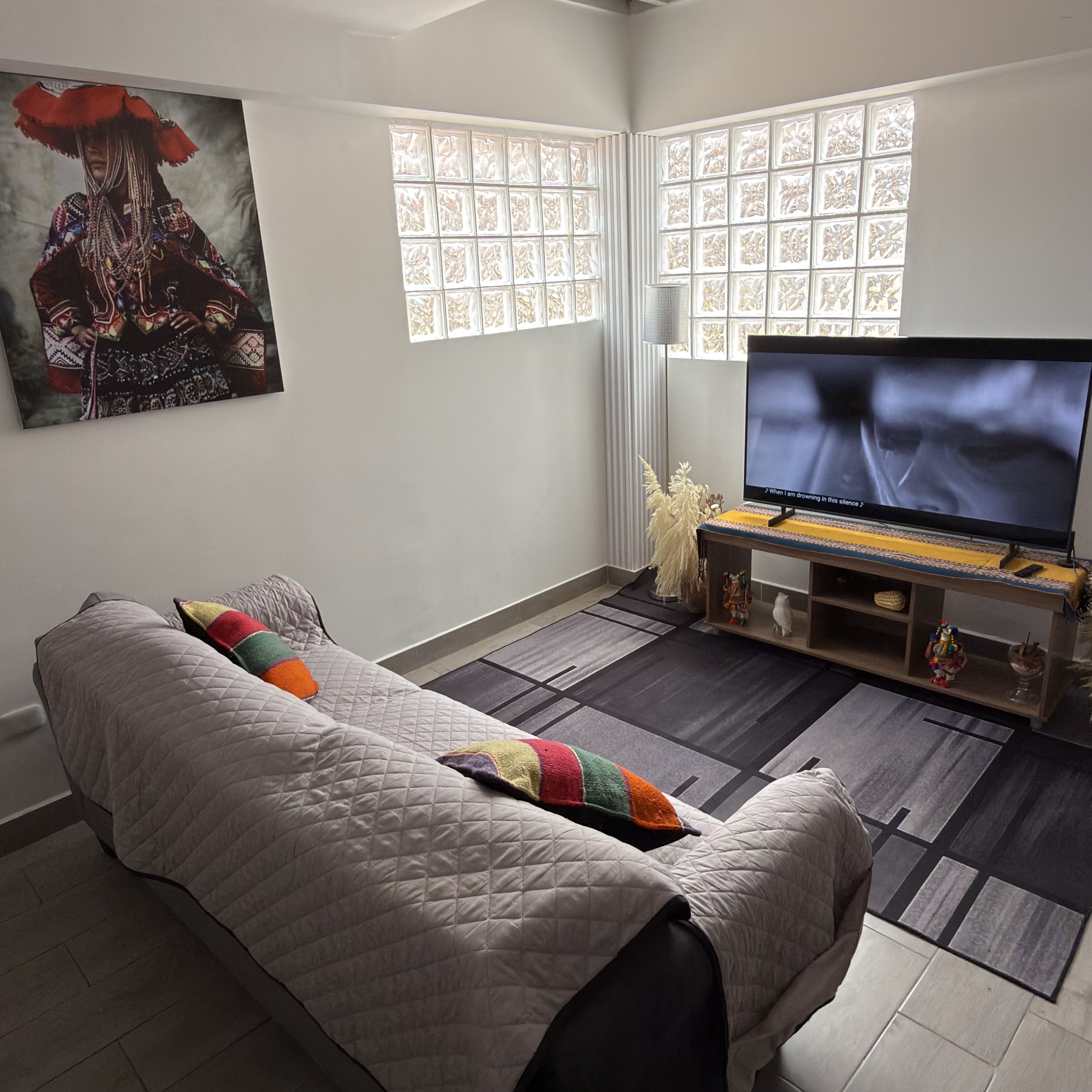 Buen lugar para hospedarse en Cusco. Buena localización a unos 10-15 minutos caminando de la plaza de armas, cerca de varios lugares turísticos de la ciudad, bastante fácil acceso. El departamento se encuentra en un segundo piso, hay que subir unas cuantas escaleras. Cuenta con todo lo necesario, bastantes cobijas calientitas para el frío de la noche. Se siente segura la zona. En frente se encuentra una lavandería y hay varias tienditas.